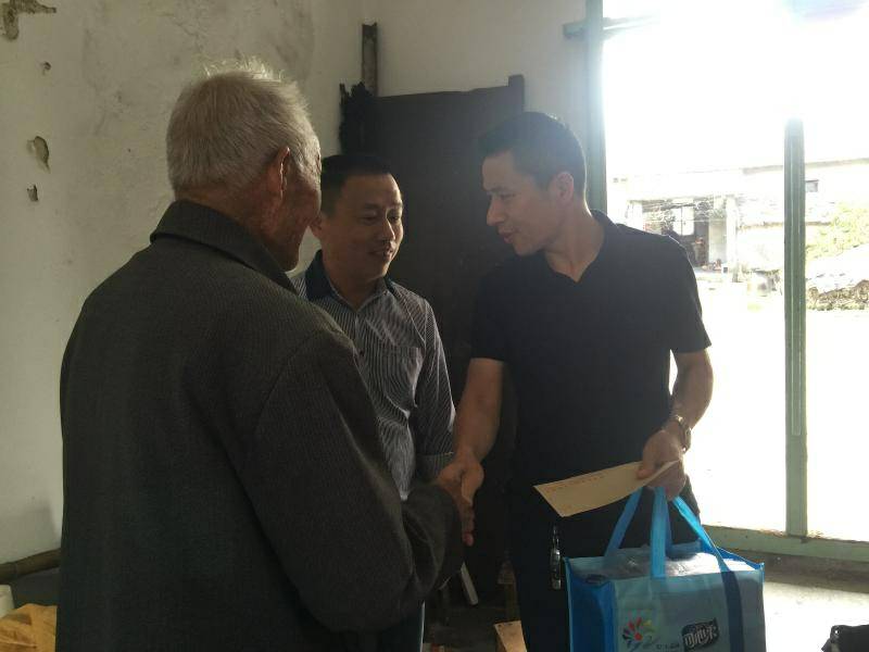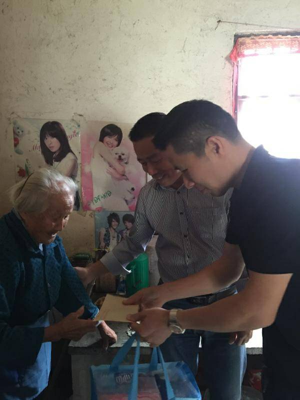 重阳节浙江石家庄志豪水培植物经营有限公司纸业陈少林董事长、生产部经理邵忠华等企业高层前往结对村看望困难老人